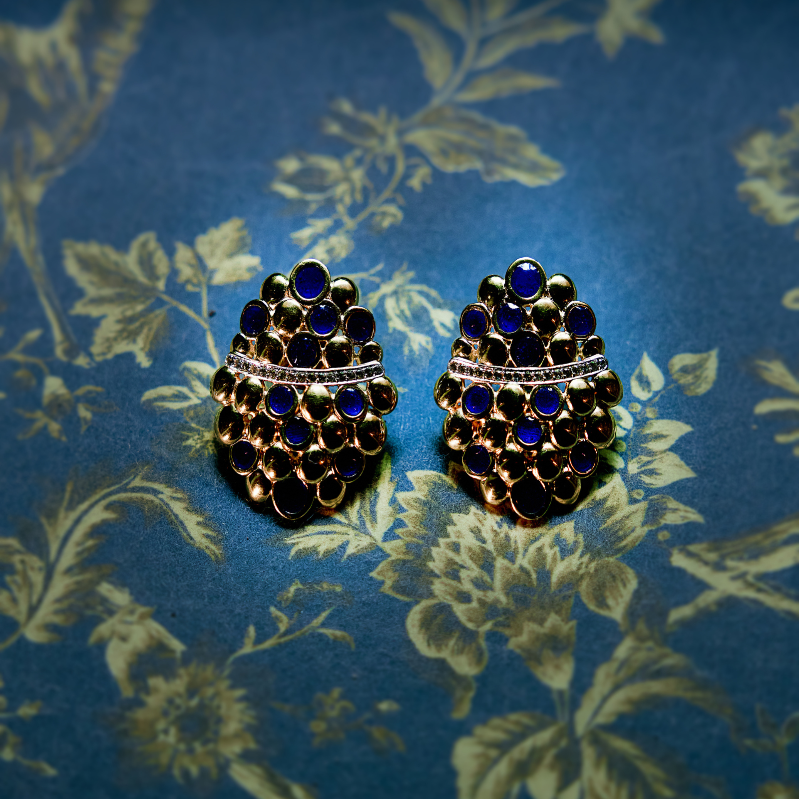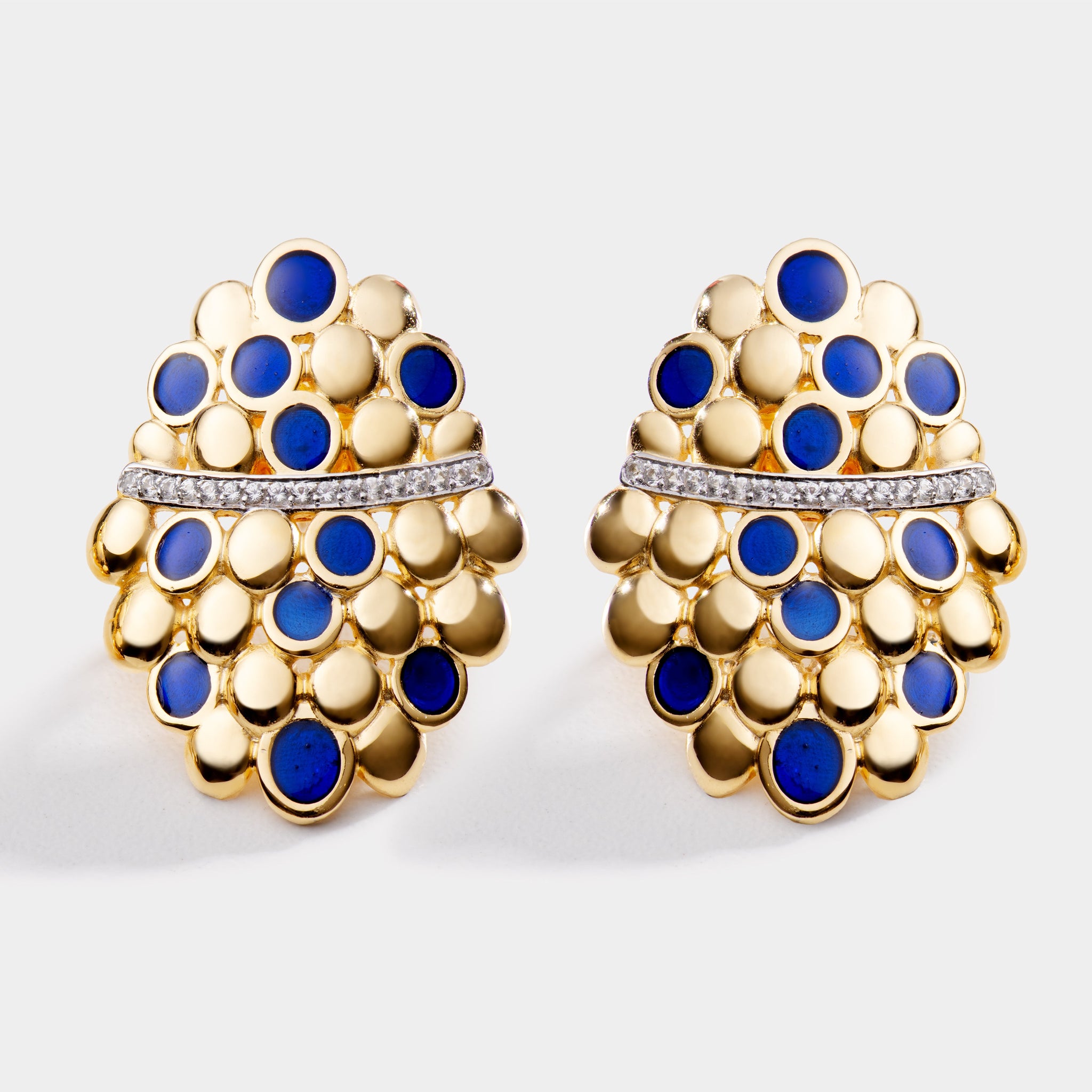 Brinco em Prata banhado a Ouro 18k esmaltado em Azul com safira incolor 0,44ct.