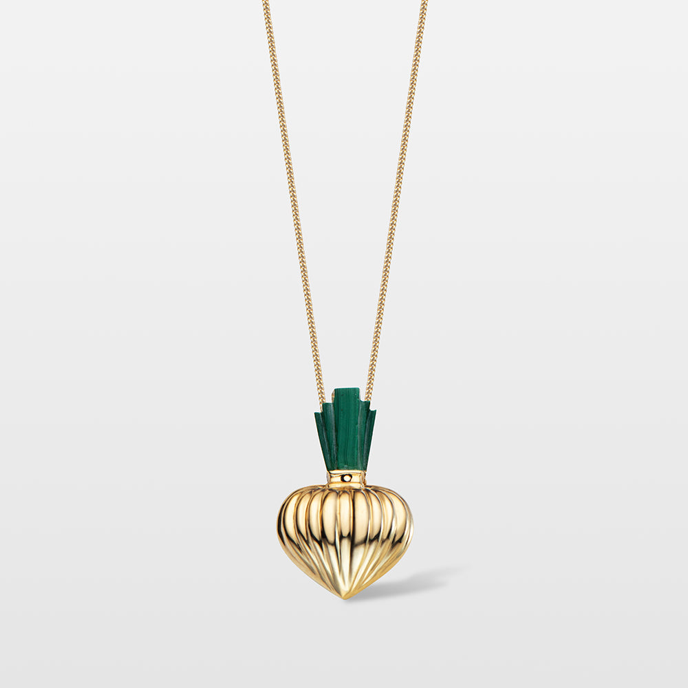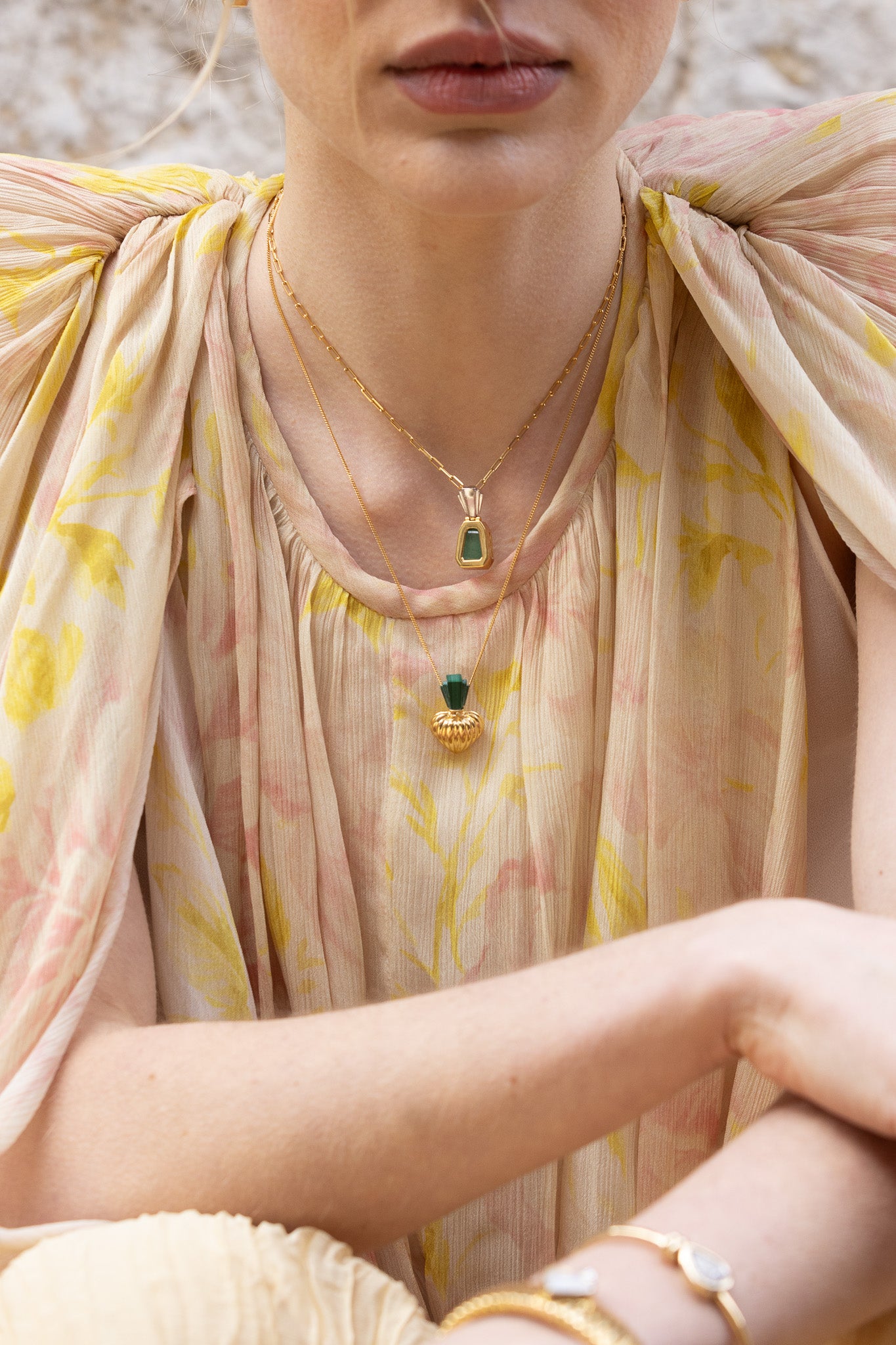 Colar de prata com banho de ouro 18k e malaquita 4,0ct.