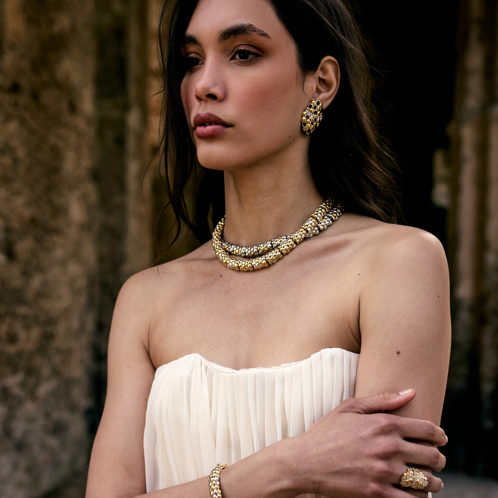 A joalheria Jessica Kattan garante a autenticidade e alta qualidade dos materiais utilizados na confecção de suas joias seguindo os padrões praticados pelo mercado internacional, com peças produzidas em ouro 18 quilates, prata 950 e gemas naturais.
